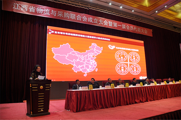 江西省物流与采购联合会成立大会在南昌举行。江西省政协副主席汤建人、中国物流与采购联合会会长何黎明、中国仓储协会会长孙杰、江西省商务厅副厅长李文尧出席会议并致辞。中物联副会长蔡进也出席大会并作了我国物流业发展现状与趋势的主题报告。江西省有关单位负责同志、省物流与采购联合会新当选的领导班子和会员代表以及广东、上海等外省市物流行业协会代表共500多人参加了成立大会。