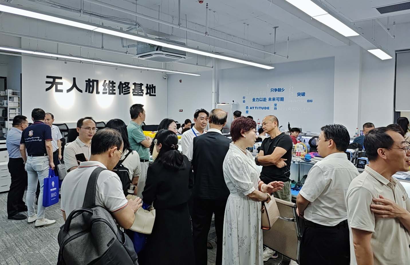 会后,参会人员共同参观了无人机维修实训基地,实地了解设备配置与实训环境,并围绕产教融合、合作落地以及低空专业发展痛点等议题展开务实讨论,并结合实际提出合作意向与建议。