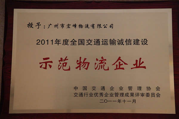 大会宣布了"关于表彰2011年度全国交通运输先进物流企业和优秀物流管理者及管理创新优秀论文的决定",大会对10家优秀服务示范物流企业、9家诚信建设示范物流企业、10家创新能力示范物流企业、9家信息管理代示范物流企业和29名卓越物流管理者、优秀物流管理者,10篇管理创新优秀论文进行了表彰,颁发了荣誉证书和奖牌,宏峰公司荣获了全国"诚信建设示范物流企业"的光荣称号,并领取荣誉证书和奖牌。