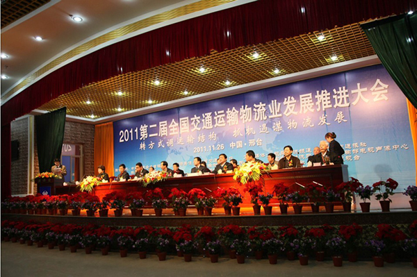 由中国交通企业管理协会、邢台市人民政府主办的"2011第二届全国交通运输物流业发展推进大会"于2011年11月26日至27日在河北邢台市好望角大酒店召开。本次大会旨在贯彻落实国务院办公厅《关于促进物流业健康发展政策措施的意见》精神和交通运输部《"十二五"期间交通运输行业促进现代物流发展对策研究》中提出的总体思路、主要任务。会议邀请政府领导、聚集行业领军人物与专家学者,围绕转方式调运输结构,抓机遇谋物流发展的主题,深入研讨,交流由运输经营型向现代物流经营型转变与升级的建设经验及创新管理理念,展示和推广"三个服务"的能力和水平。宏峰公司总经理张晶林出席会议。邢台市政府对此次会议非常重视,副市长李博亲临大会并致辞。交通部领导也出席会议并讲话,祝贺大会的隆重召开。